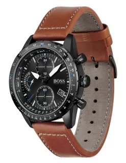 Hot Sale π HUGO BOSS Pilot Edition Chrono 44mm Brown Leather Black β Watch 1513851 π