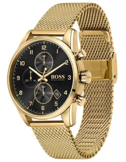 Brand new π HUGO BOSS Skymaster 44mm Gold Mesh Black Chrono β Watch 1513838 π