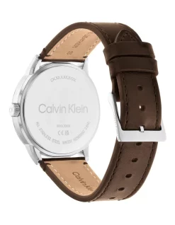 Architectural sophistication. Multi-layered dial featuring the Calvin Klein acronym with exposed multi-functional movement. Available on a bold mesh bracelet.