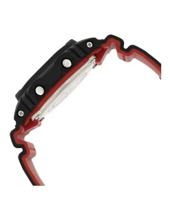 The outer segments of the band are made of resin embedded with metal parts, while the center segments are made of lightweight, highly durable fine resin. The inner surfaces of the center segments are colored with striking red for a distinctive accent. A one-press three-fold type band buckle makes fastening and unfastening quick and simple.