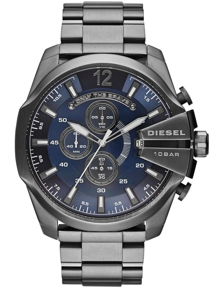 With gunmetal plating and a navy blue dial, this rendition of Mega Chief is as sleek and bold as it is flawlessly minimal.