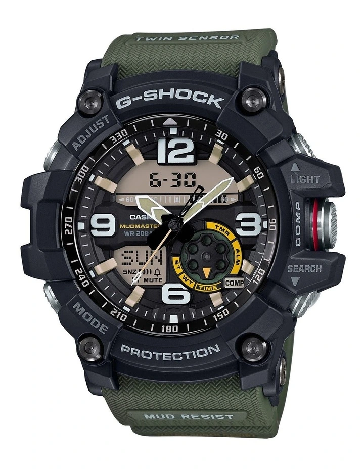 G Shock Mudmaster Twin Sens Direction & Temperature, black Lcd, Green Resin Band