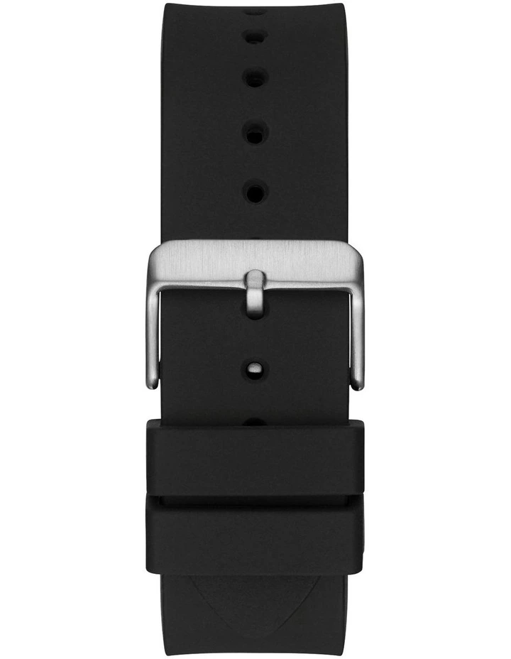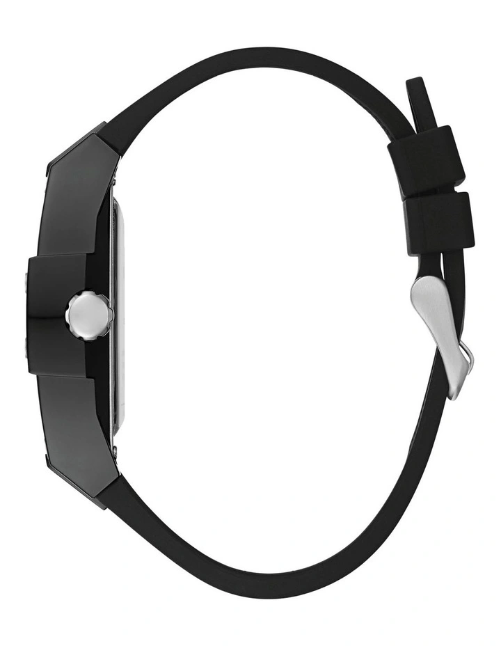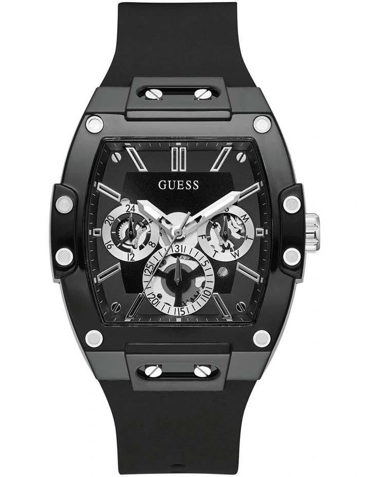 This Guess Phoenix watch is the perfect timepiece for your everyday life. This watch features a black polycarbonate case and a genuine black leather strap.