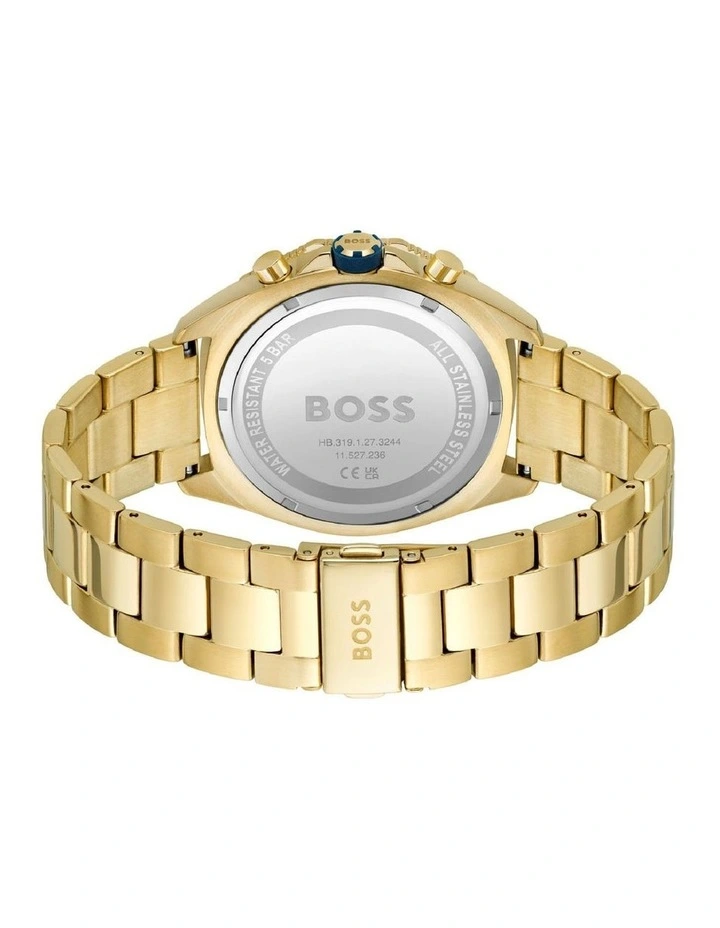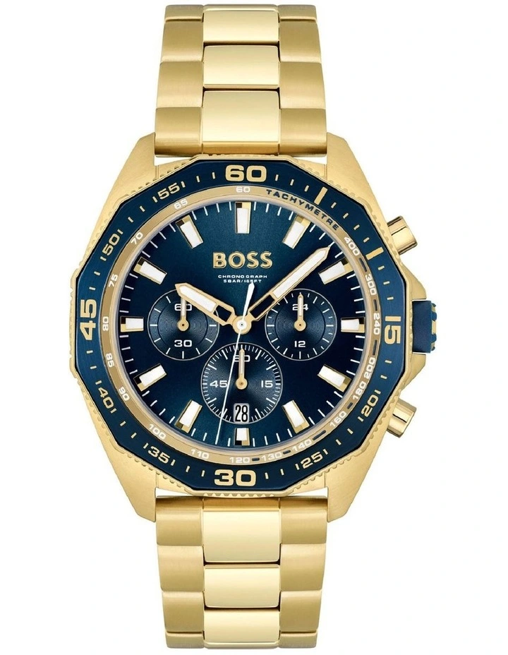 The determination of every BOSS is revealed in the design of the BOSS Energy, a contemporary chronograph with a striking geometric and textured bezel. Pushers, crown protection, and a tachymeter ensure a sporty aesthetic, while three sub eyes add dimension to the sunray dial, detailed with super-luminescent indexes. A stitched silicon strap or link bracelet completes the timepiece, offered in both classic shades and bold modern colors.