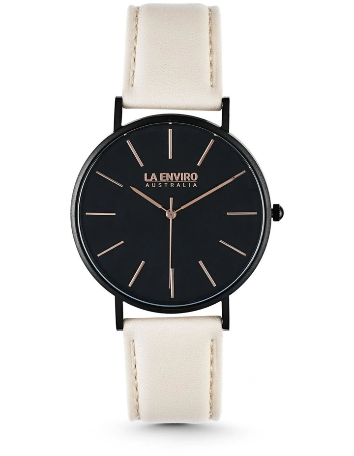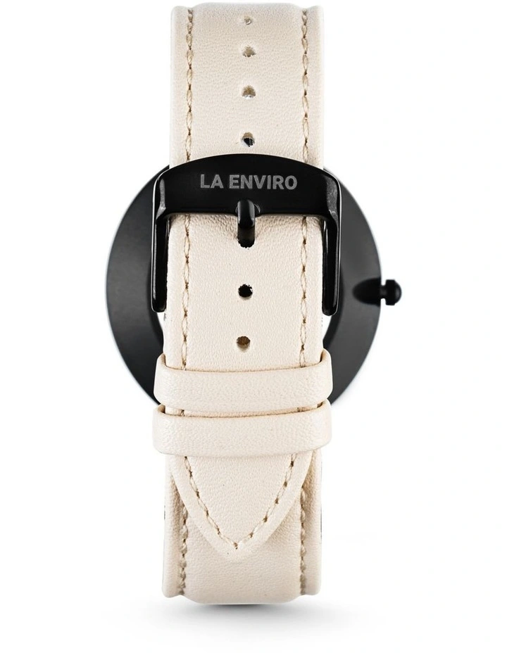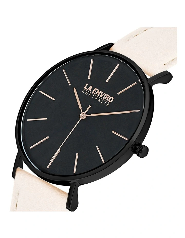Fabrication: Black Plating, Stainless Steel (316L), Vegan Pu Leather Band