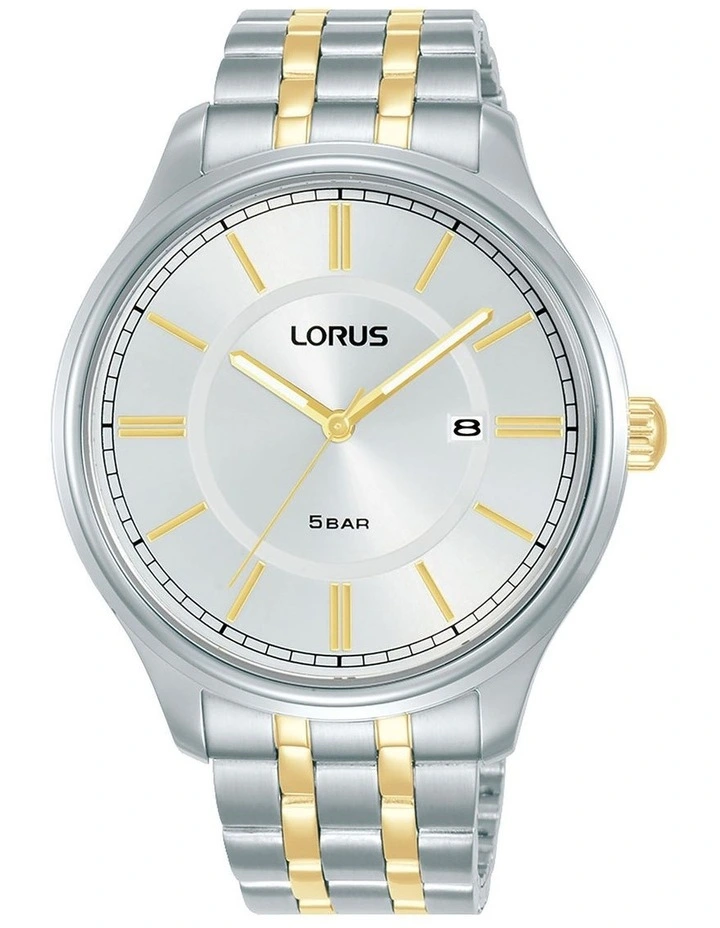 The Lorus RH953PX-9 is a silver and gold two-tone gents watch. This watch features a silver dial encased in mineral crystal glass, 50m water resistance and a date display. Features include: Stainless steel case and bracelet, Two tone silver and gold, Silver dial, 50m water resistant, 42mm case size, Mineral crystal glass and Date display.