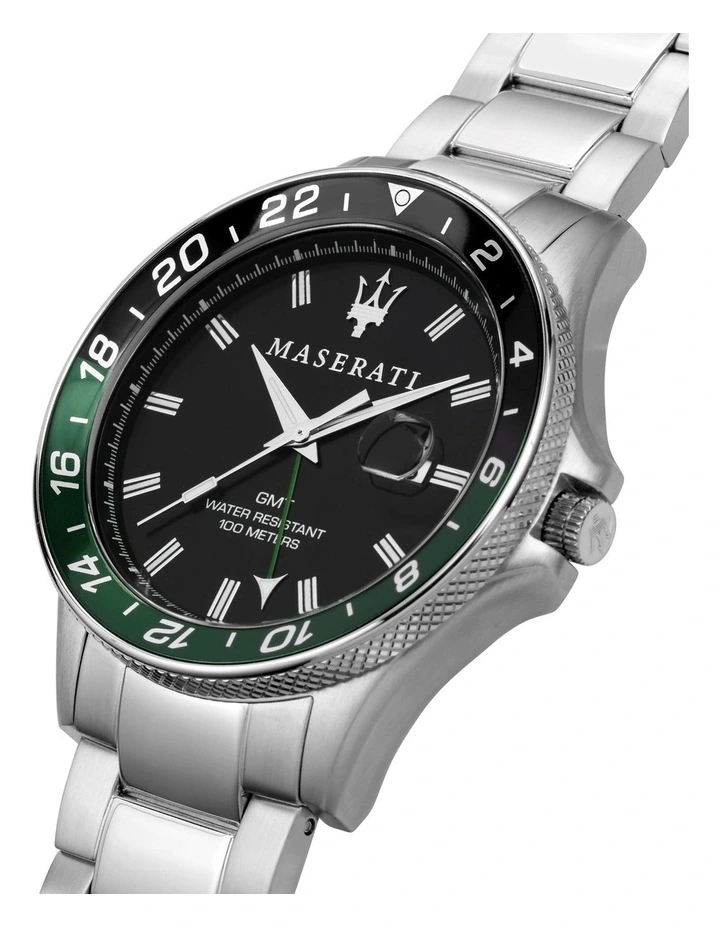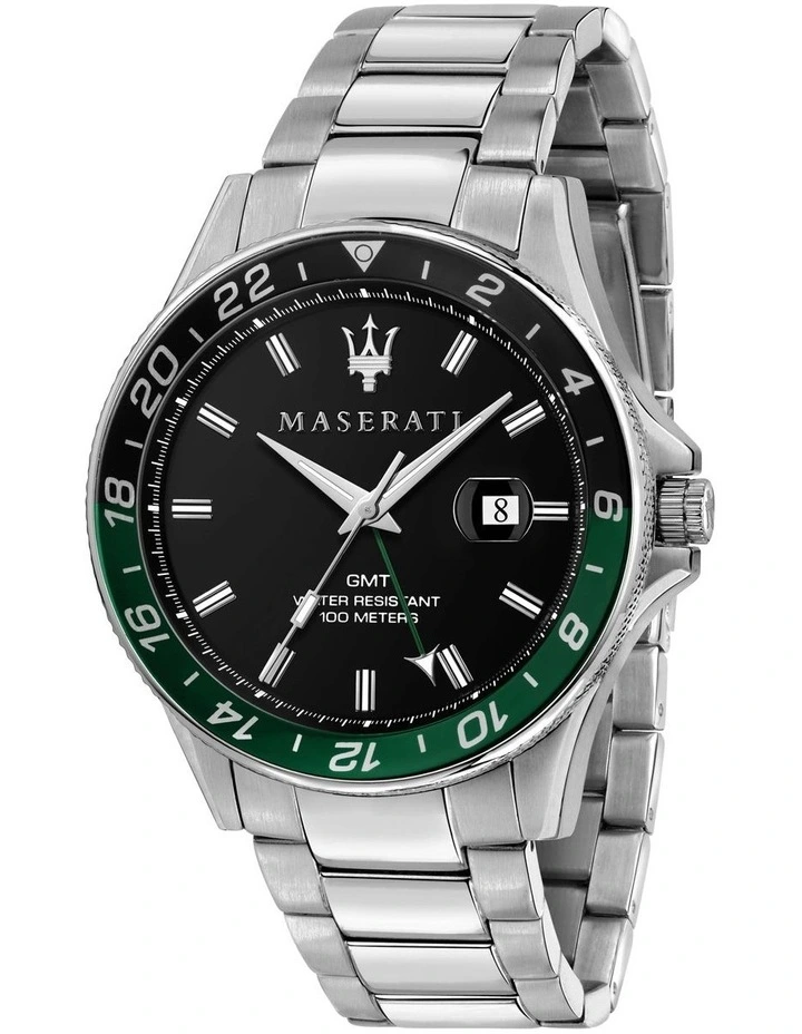 Presenting the Maserati Sfida 44mm Black Watch. The Maserati Sfida Collection consists ofwatches with sporty elegance, characterized by a structured design,steel case (44mm) with rotating or tachymeter bezel, knurling finish onone side. The sunray effect or modern dgrad dials offer elegance and rigour, distinctive features of Maserati maison. The new models from Sfida collection are based on Maserati’s values and sporting heritage. Detailed watch constructions and colour nuances enhance the super luxury brand DNA.