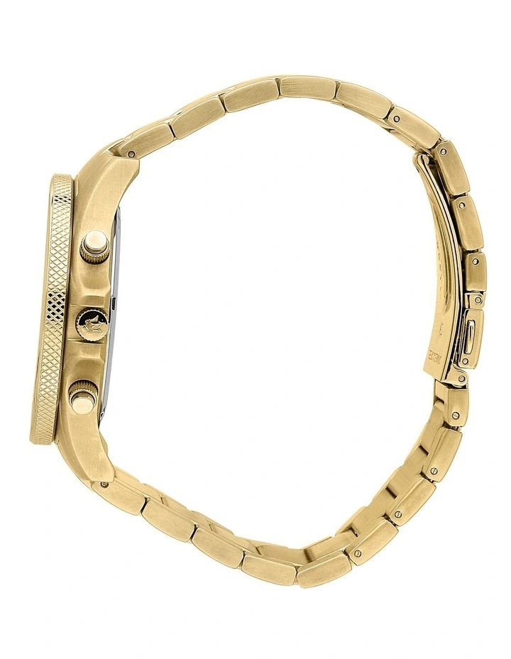 Presenting the Maserati Sfida Chronograph Gold Watch. The Maserati Sfida Collection consists ofwatches with sporty elegance, characterized by a structured design,steel case (44mm) with rotating or tachymeter bezel, knurling finish onone side. The sunray effect or modern dgrad dials offer elegance and rigour, distinctive features of Maserati maison. The new models from Sfida collection are based on Maserati’s values and sporting heritage. Detailed watch constructions and colour nuances enhance the super luxury brand DNA.