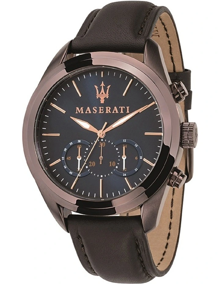 Maserati Traguardo Blue Watch. Maserati Traguardo Blue Dial Brown Leather Strap Chronograph. R8871612008.