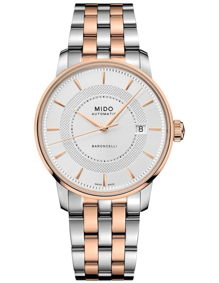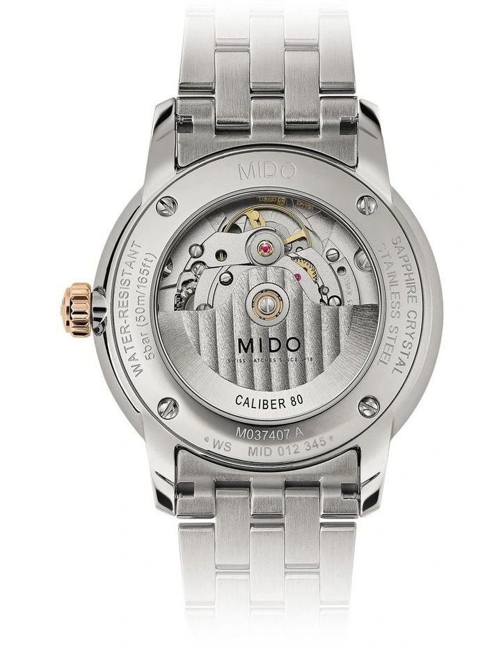 - Movement: Automatic Mido Caliber 80 (base ETA C07.611)