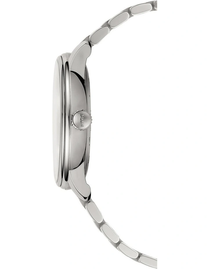 The new Baroncelli Heritage Smiling Moon Swiss watch reach for the moon, displaying it on your wrist with elegance and exceptional slimness. The phases are presented in a highly original manner, through a wide smile on the dial. The extreme purity of this classic grained dial is juxtaposed with the radiant polished steel of the case and bracelet. Above all, it features an utterly unique moon-phase aperture, where a rotating disc reveals the eight main phases of the Earth’s satellite in a star-studded sky. Behind the scenes, this magical sight conceals a highly accurate Mido automatic mechanical movement at work.