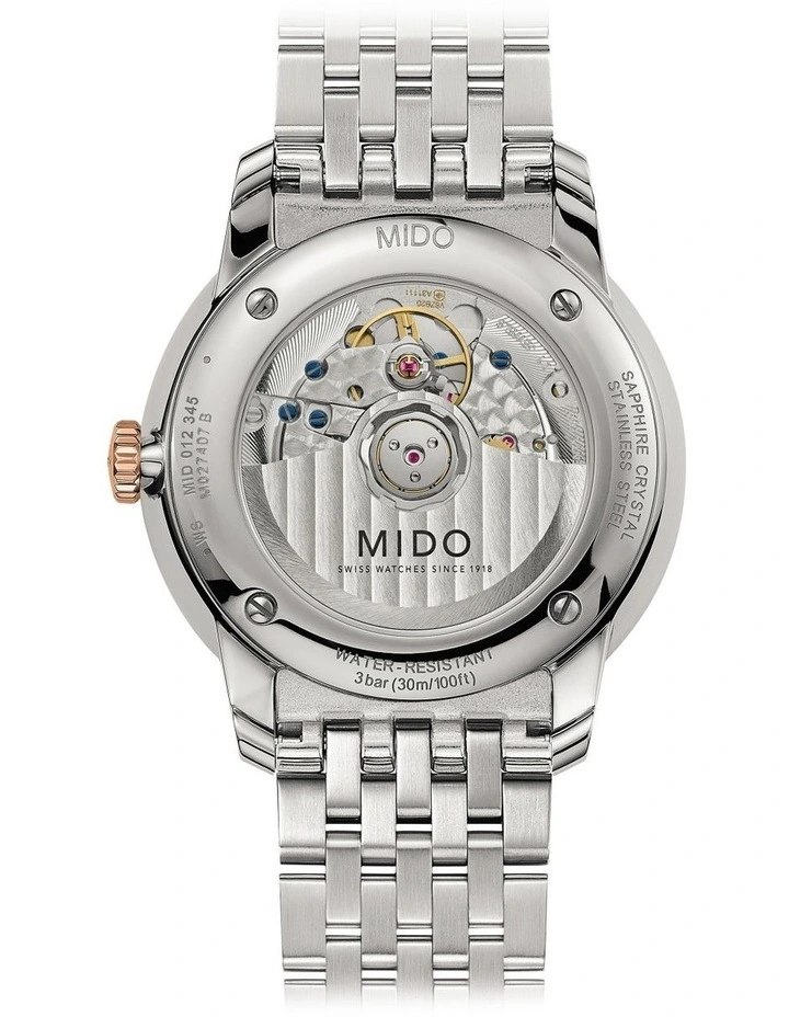 - Movement: Automatic Mido Caliber 72 (base ETA A31.111)