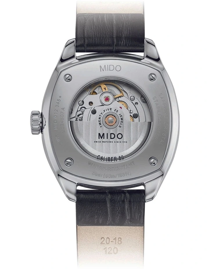 - Movement: Automatic Mido Caliber 80 (base ETA C07.611)