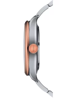 - Water Resistance: 10 bar (100 m / 330 ft) with screwed crown Bracelet/Strap: Stainless steel with rose gold PVD coating