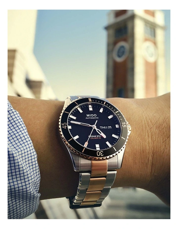 - Movement: Automatic Mido Caliber 80 (base ETA C07.621)