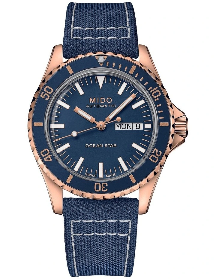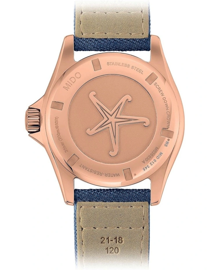 Mido pays tribute to the Ocean Star collection on its 75th anniversary! In subtle reference to the past, the Ocean Star Tribute reinterprets the aesthetic codes of the diving models from the 1960s. It offers a host of qualities: it is fitted with the Caliber 80 automatic movement, is water-resistant up to a pressure of 20 bars (200 m/656 ft) and features a unique strap offering maximum comfort.