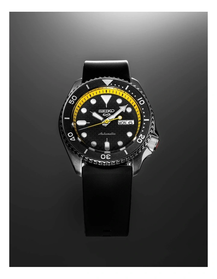 The rubber strap takes inspiration from the slick racing tyre and the watches are packaged in a sleek presentation box. Featuring the calibre 4R36, this automatic watch is powered by the movement of the wearer or by winding the crown and has approximately 41 hours power reserve at full charge.