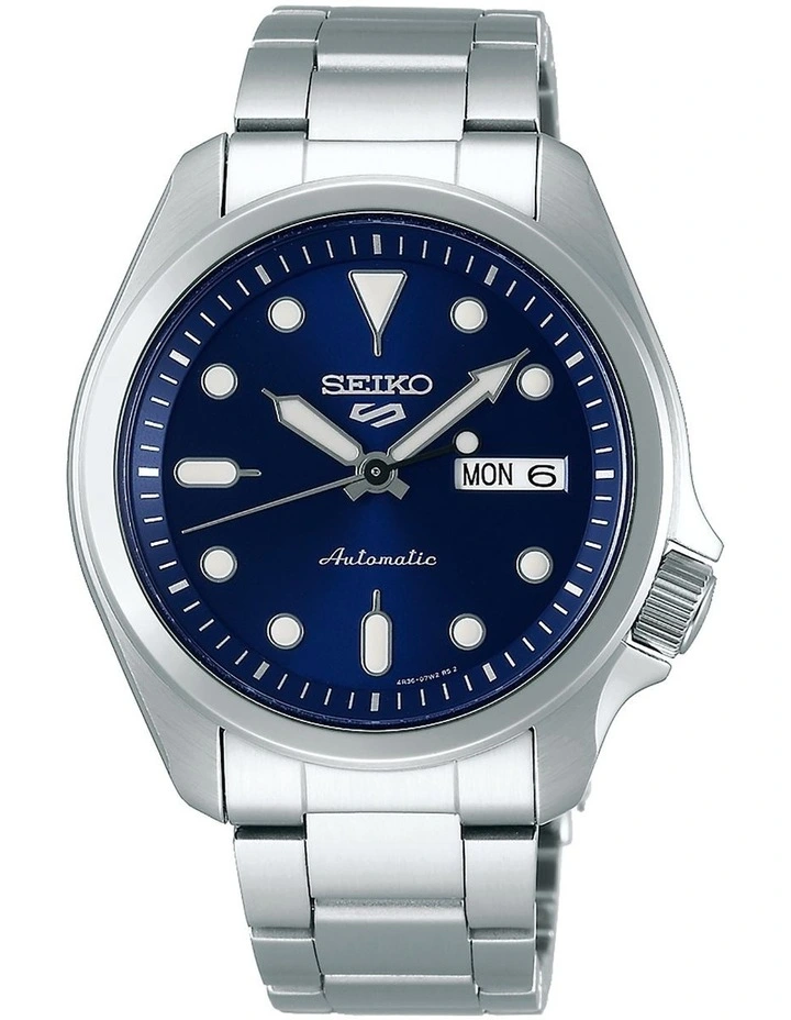 From the iconic Seiko 5 Sports series and featuring a 4R36 automatic movement with approximately 41 hours power reserve, this silver with blue dial watch is perfect for any occasion. Taking inspiration from the original Seiko 5s of the 1960’s, this classic vintage looking watch is a staple piece for any collection. It features a stainless-steel case and bracelet, 100m water resistant, day/date display and a recessed crown at the 4 oclock position. With durable Hardlex glass, exhibition case back and Seikos Lumi brite hands and markers this automatic watch will last the test of time.