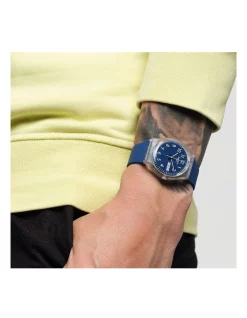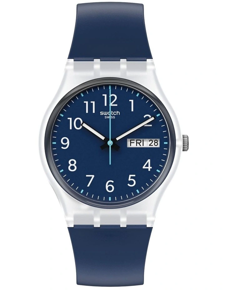 A transparent case brings light and timeless chic to this new matte model. Glow-in-the-dark hands and a bio-sourced strap make it a keeper.