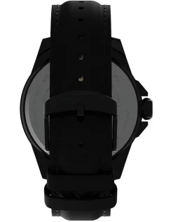 Our legendary Timex durability comes to life with this modern analogue watch. The octagonal black bezel is the standout of this style, resting atop a 44mm black case, and is paired with a genuine black leather strap to complete this bold yet sophisticated look.