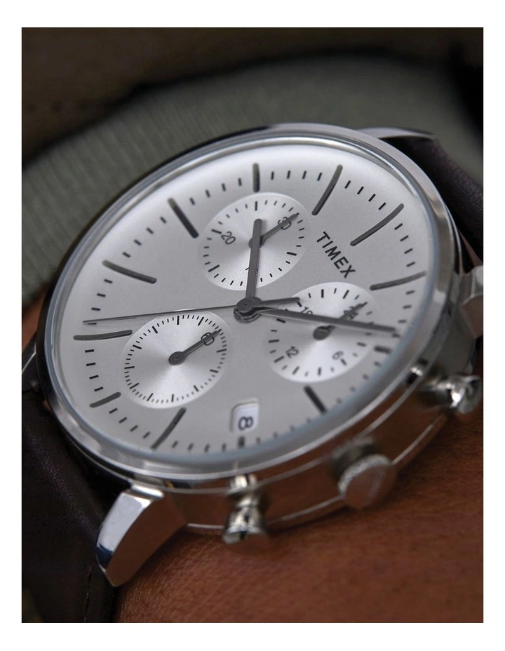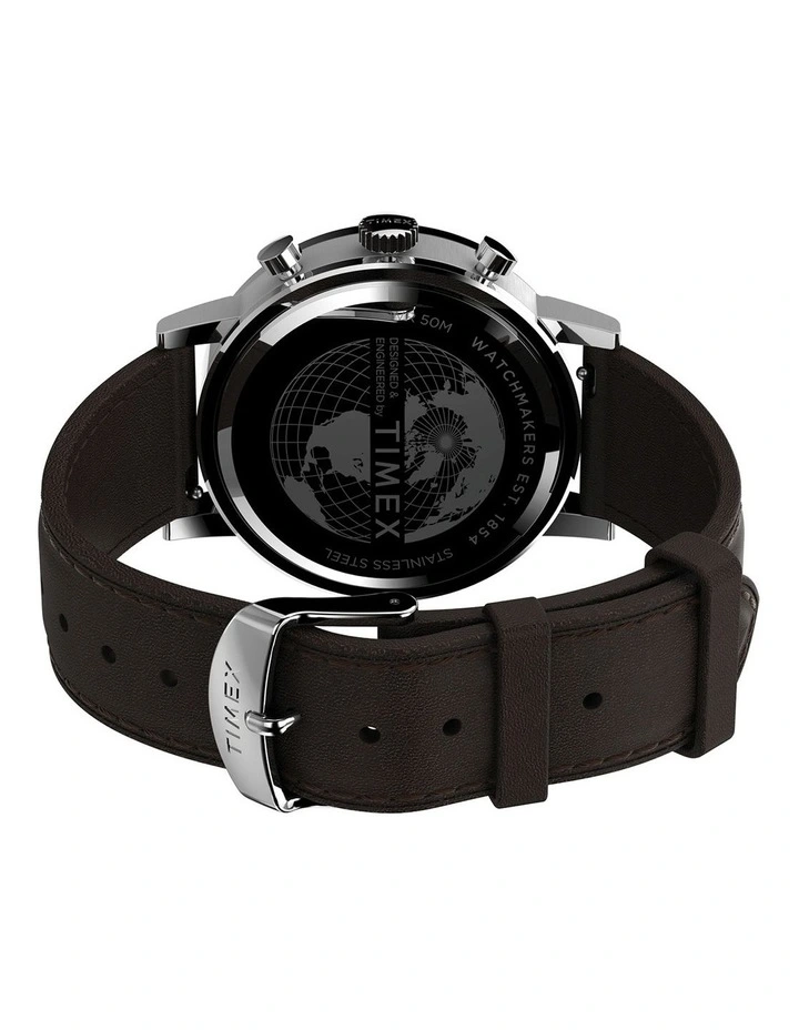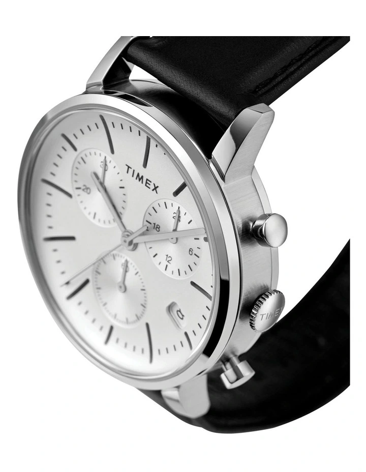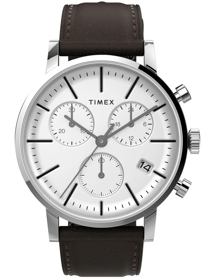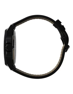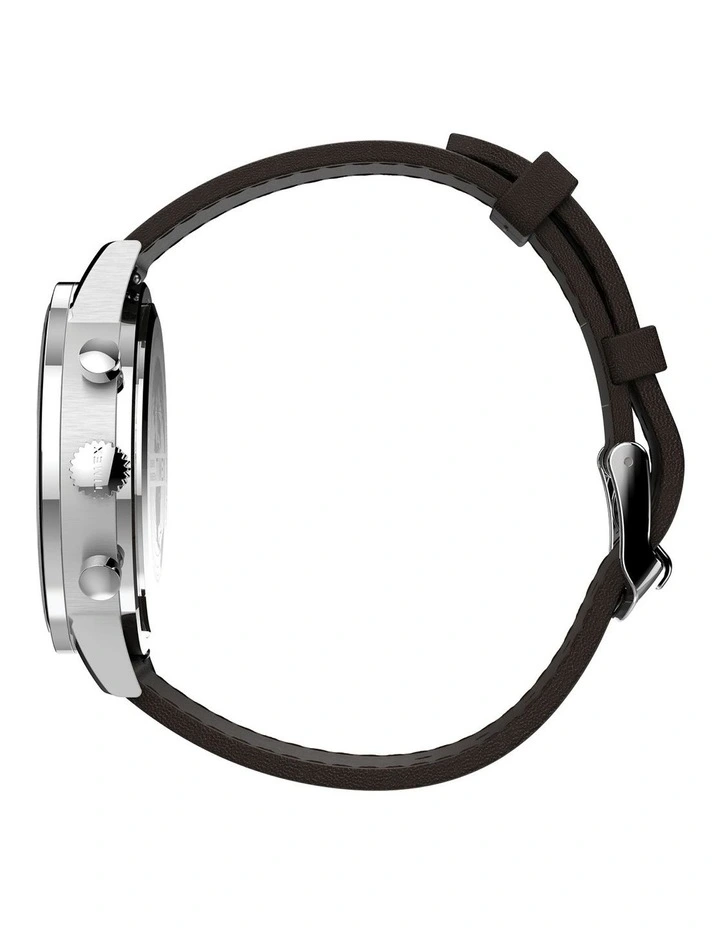 When chic refinement meets city slicking edge with this classic but unique watch. This watch features a meticulously stitched black leather strap, brushed finish stainless-steel case, simple elevated markers and a unique white concave dial. Wherever youre heading, with this piece on your wrist you will get there in style.Β
