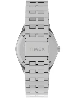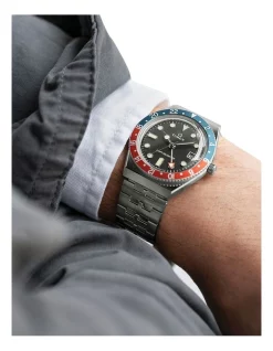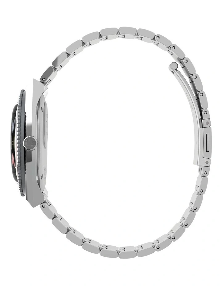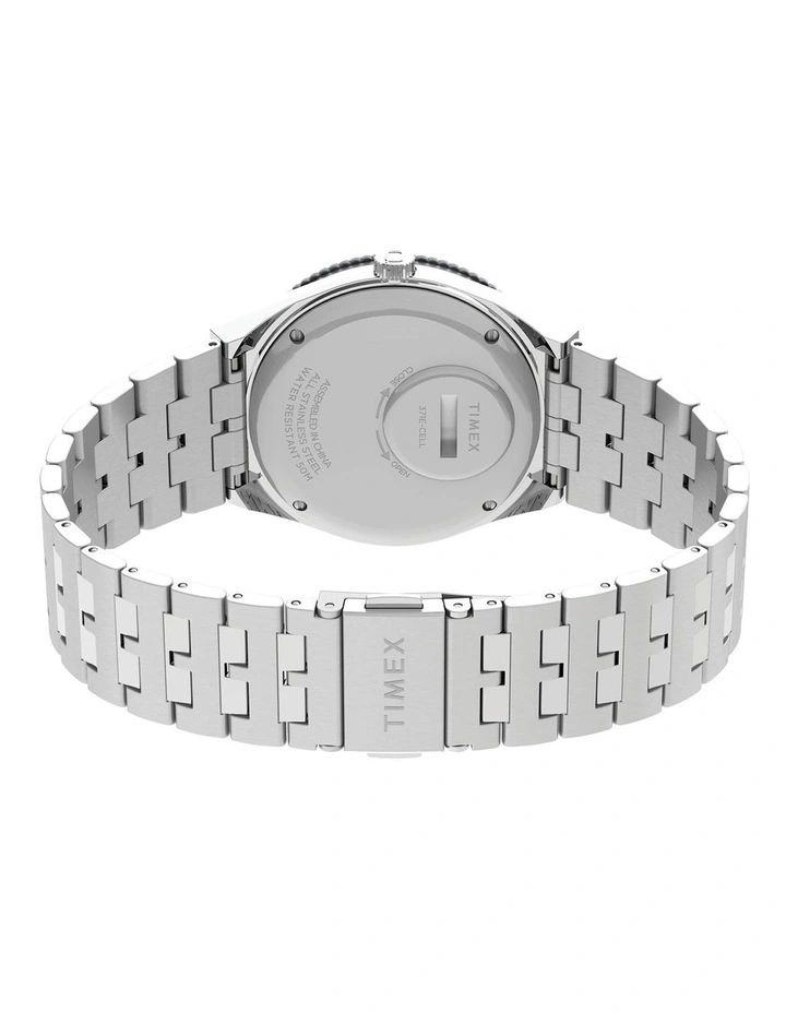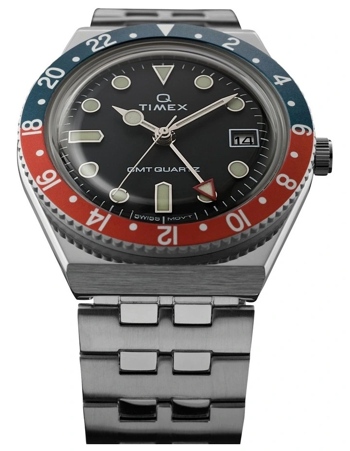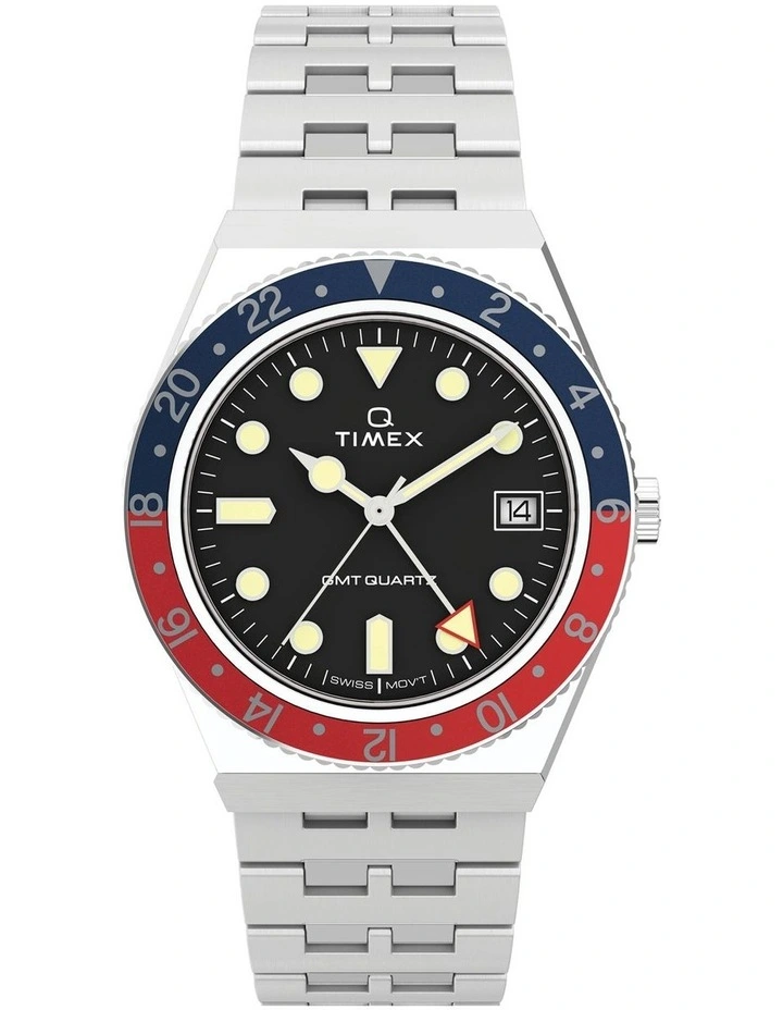 Our original Q Timex GMT by Timex is everything you love in a watch, and then some. With the addition of new colourways to the iconic details of the original, the much-loved Q Timex 1979 Reissue watch features a black and red rotating bezel, woven stainless-steel bracelet, functional battery hatch and domed acrylic crystal.