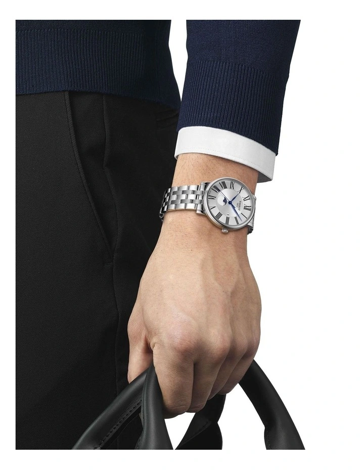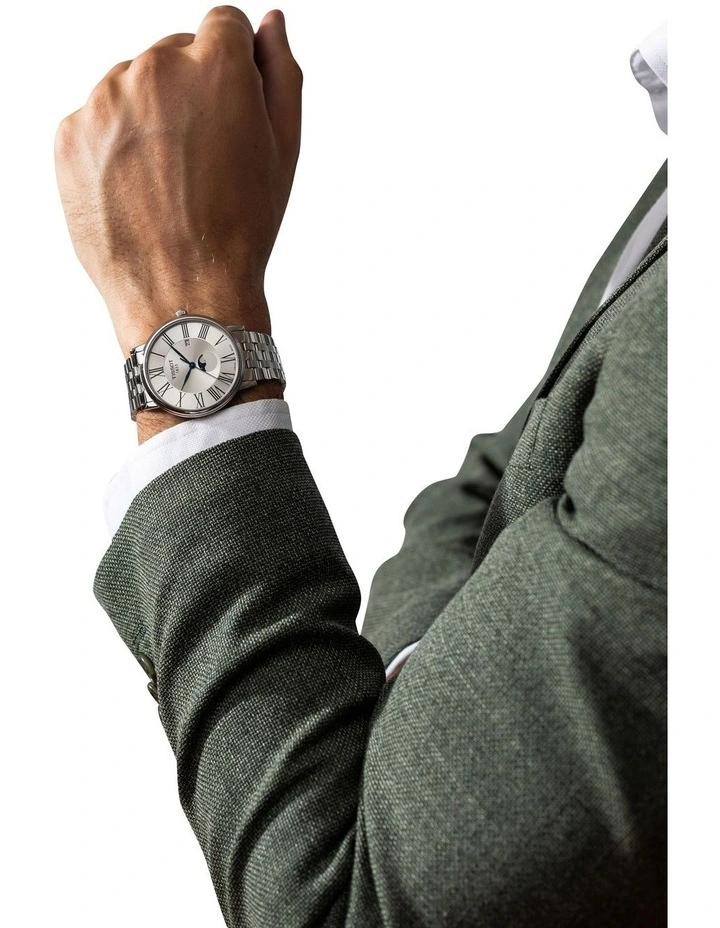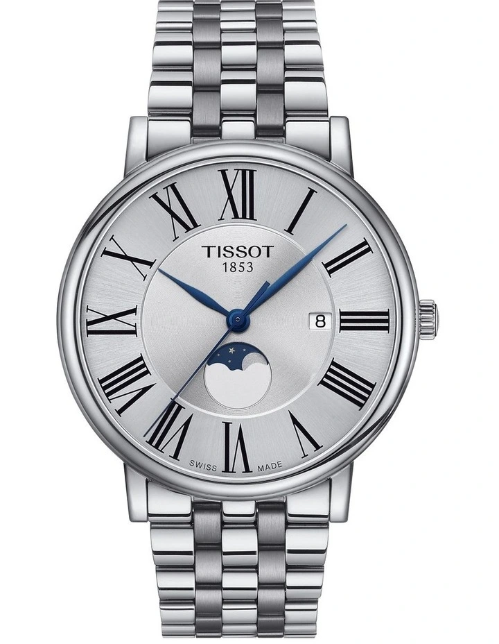 The Tissot Carson Premium Moonphase offers a combination of simplicity and robustness. This classic watch, with its elegant dial and moonphase indicator, is designed to suit any time and place.