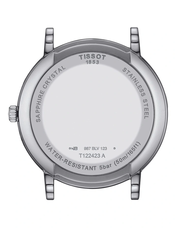 The Tissot Carson Premium Moonphase offers a combination of simplicity and robustness. This classic watch, with its elegant dial and moonphase indicator, is designed to suit any time and place.