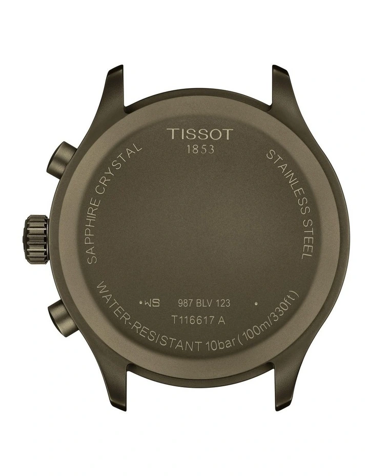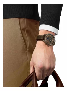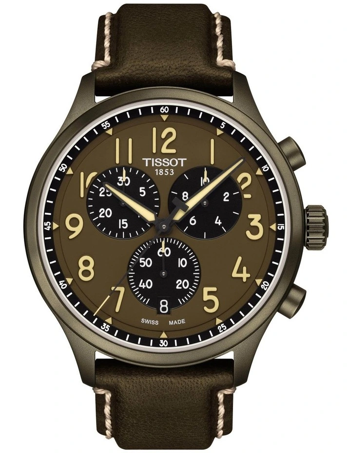 The Tissot Chrono XL takes sporty and on-trend style and matches it with Tissots Swiss technology. At 45mm, this bold Chrono XL makes a statement with its vintage adventurous look.