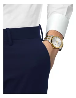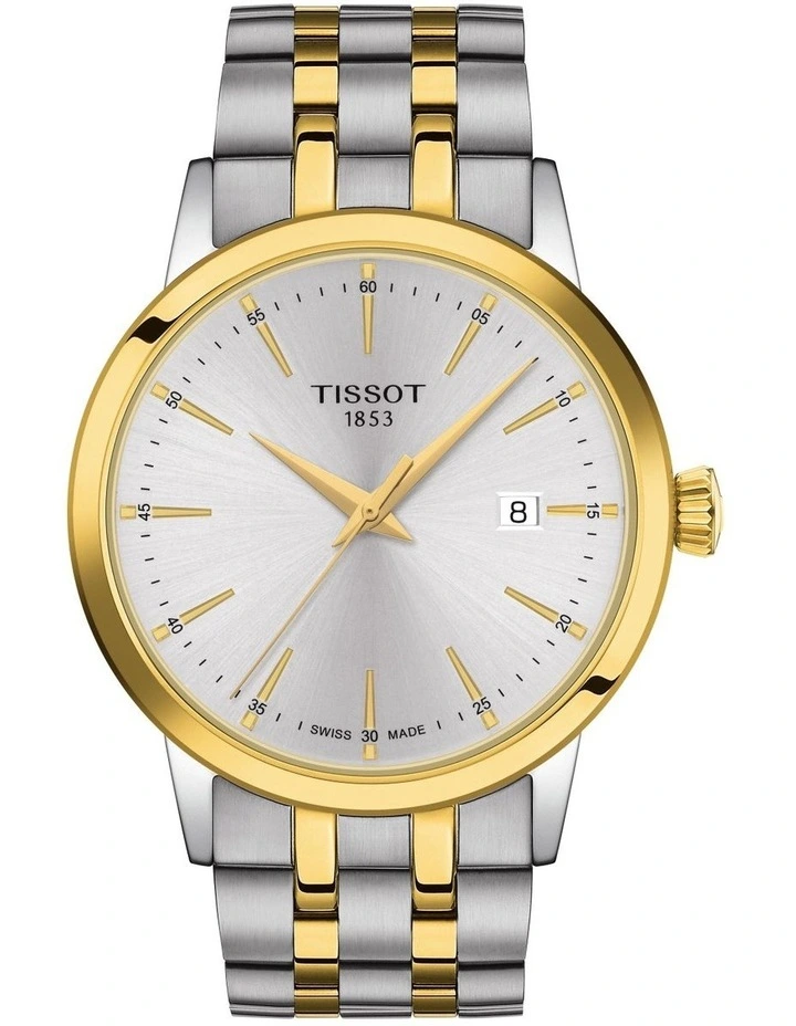 With its minimalistic design and classic look, the Tissot Classic Dream has a long-lasting appeal for all occasions. This men’s quartz watch has a scratch-resistant sapphire crystal, silver dial and robust yellow gold bi-colour stainless steel bracelet.
