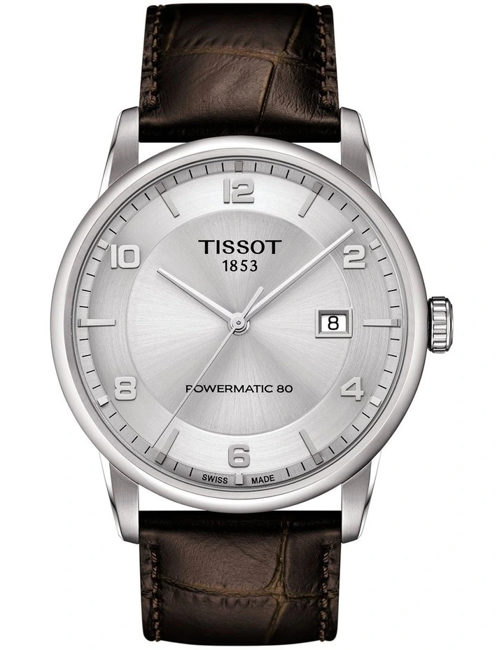 The Luxury Powermatic 80 Watch from Tissot offers exquisite design with a powerful automatic movement. With squared Arabic digits and both polished and satin surfaces for a sophisticated look.