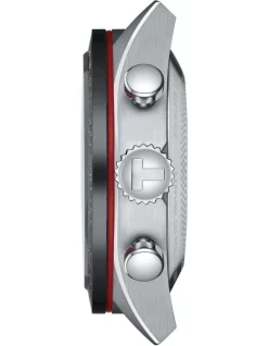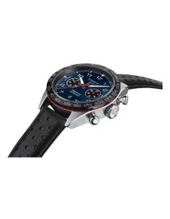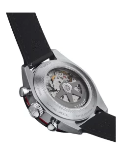 The Tissot PRS 516 Automatic Chronograph embraces its 1960s motorsport-inspired design. A mens Swiss-made automatic watch with a ceramic bezel and a wheel-shaped rotor design. Features a blue dial, domed scratch-resistant sapphire crystal with anti-reflective coating, tachymeter scale bezel and see-through caseback.