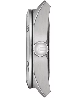 The Tissot PRS 516 Powermatic 80 embraces its 1960s motorsport-inspired design. A mens Swiss-made automatic watch with a see-through caseback shaped like a steering wheel. Features a blue dial, scratch-resistant sapphire crystal with anti-reflective coating and tachymeter scale bezel.