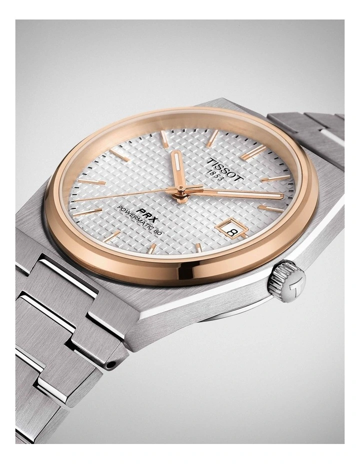 A throwback 1970s design, the Tissot PRX Powermatic 80 is an ideal watch for those with an eye for style and ingenuity. With an integrated case and bracelet, the PRX Automatic is powered by the Powermatic 80 movement and paired with the Nivachron balance hairspring for a superb amagnetic performance.