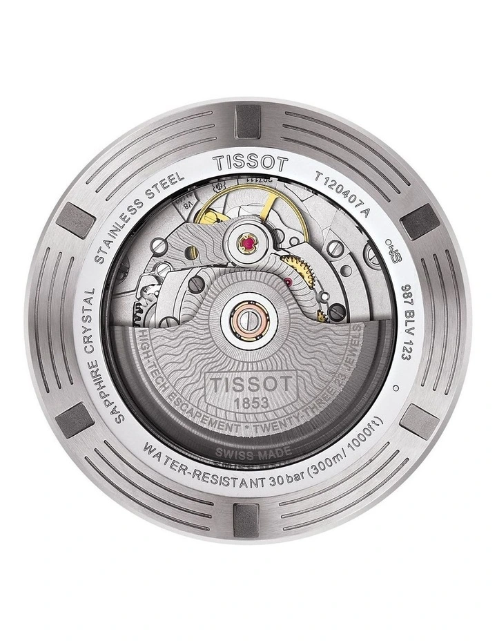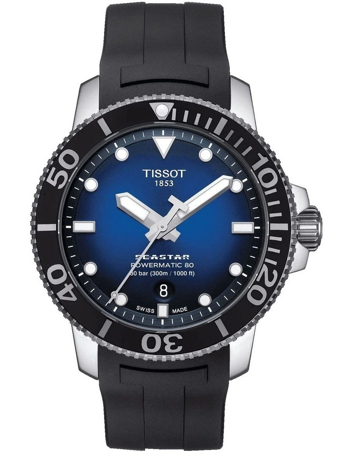 The Tissot Seastar 1000 watch featuresΒ a high water-resistance up to an impressive pressure of 30 bar (300m/1000 ft), screw-down crown and case back, and unidirectional ceramic bezel.