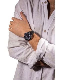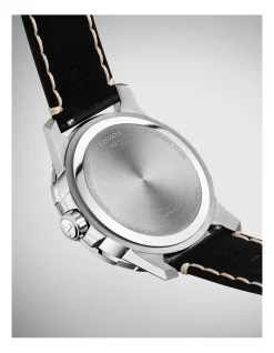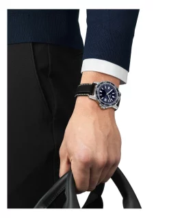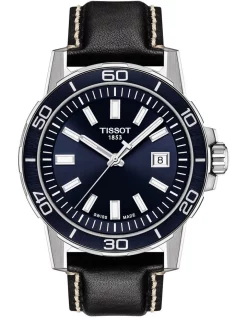 With a bold style and 44mm case, the Supersport Gent was designed with modern sportiness in mind. This mens Swiss-made watch has a scratch-resistant sapphire crystal, aluminium bezel ring, blue dial and black leather strap.