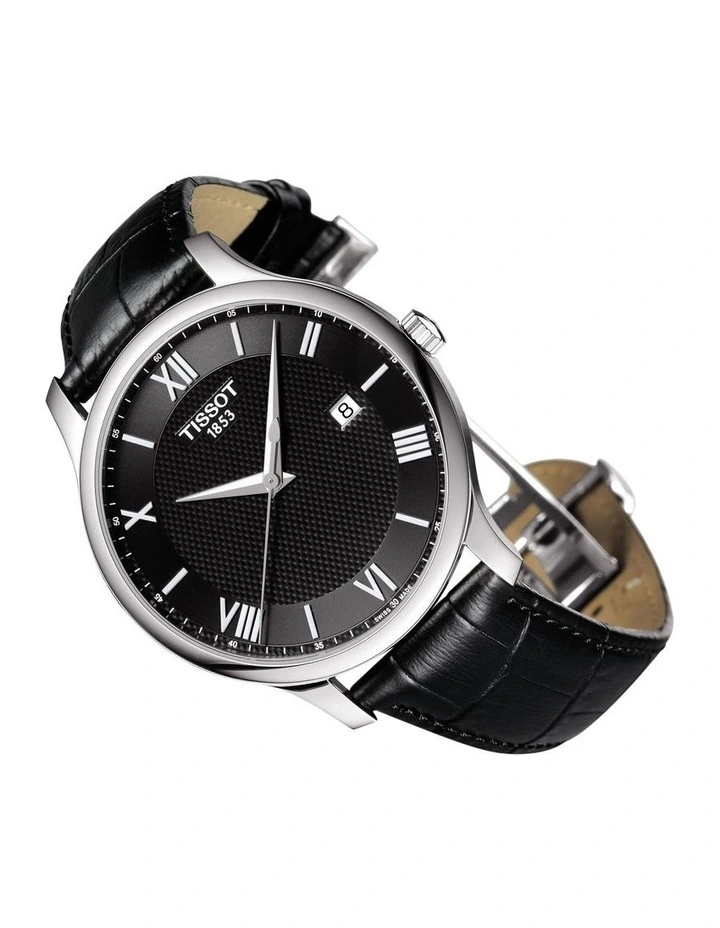 Balancing today’s technology with subtle vintage-look details, the Tissot Tradition offers a touch of nostalgia in this curved 1950s style case.