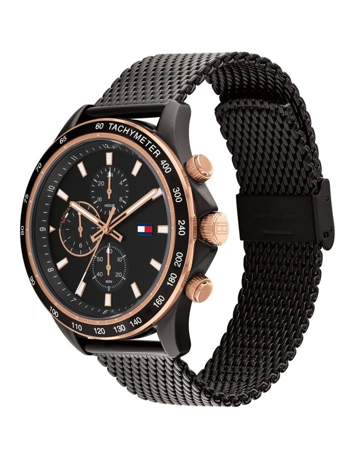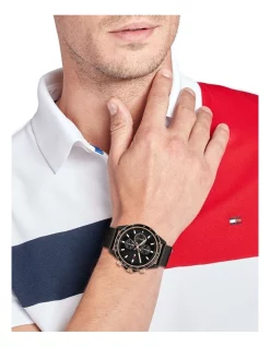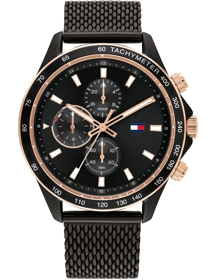 Tommy Hilfiger mens watch vintage racing inspired with sunray dial andΒ texture details surrounding three sub-eyes. Pops of color and branded details throughout get this style noticed.Β